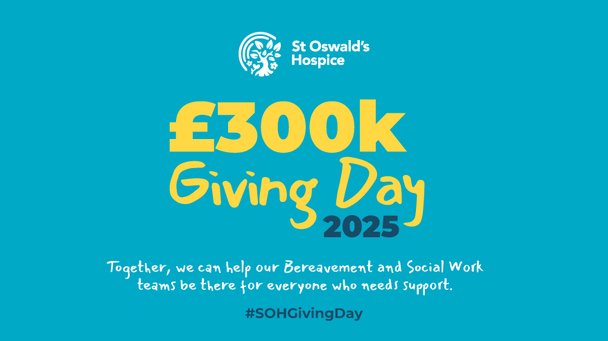 Let’s come together this Giving Day to raise £300,000 and ensure St Oswald’s Hospice can continue providing comfort, care, and hope to those facing loss — now and in the future.